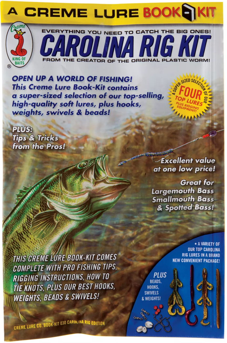 The Crème® Carolina Rig Kit contains all the best lures and rigging in one durable and convenient package. Each kit boasts up to 8 separate compartments and contains an assortment of soft plastic Crème lures in a variety of popular colors. Each compartment has a zip-seal to keep lures and rigging organized and ready to fish.