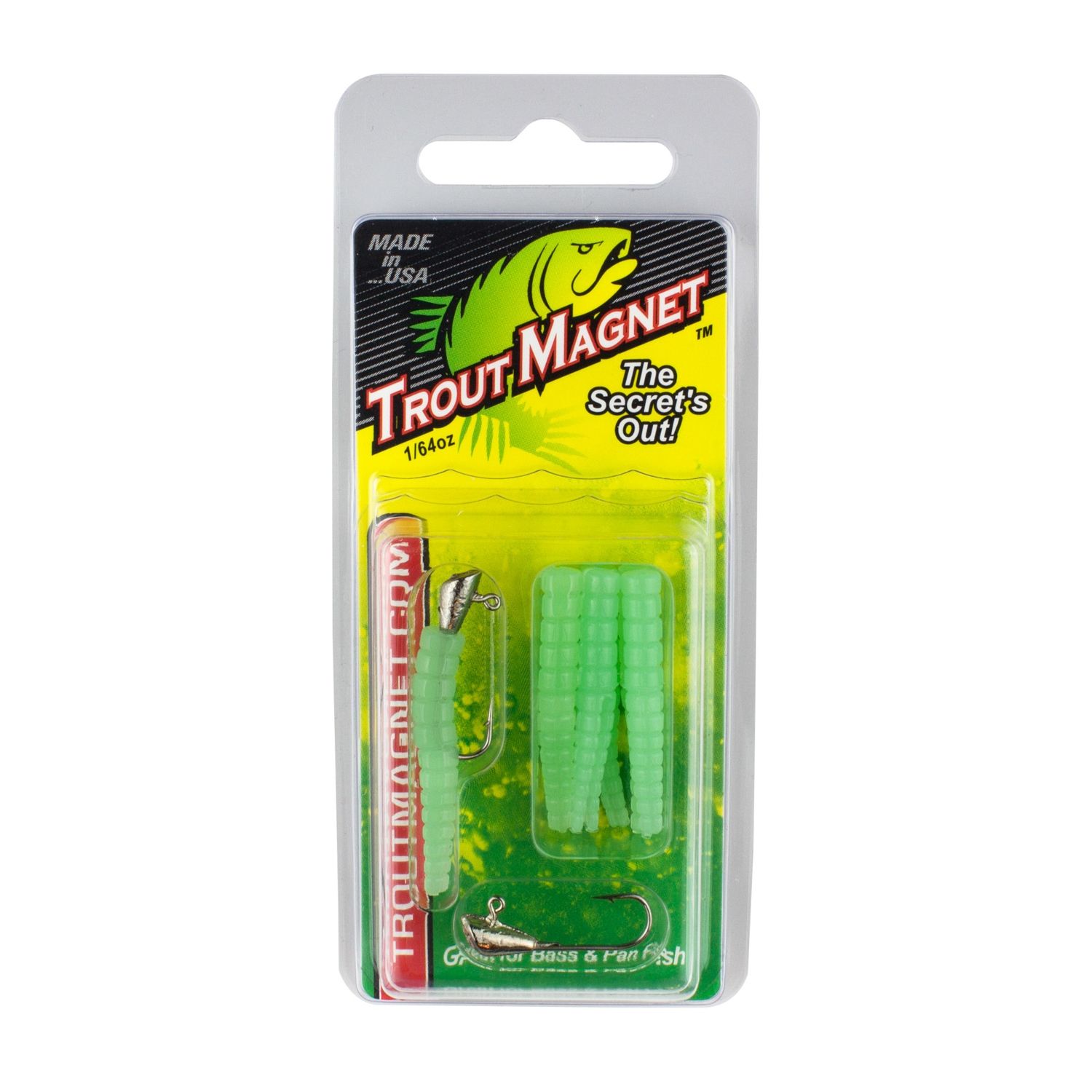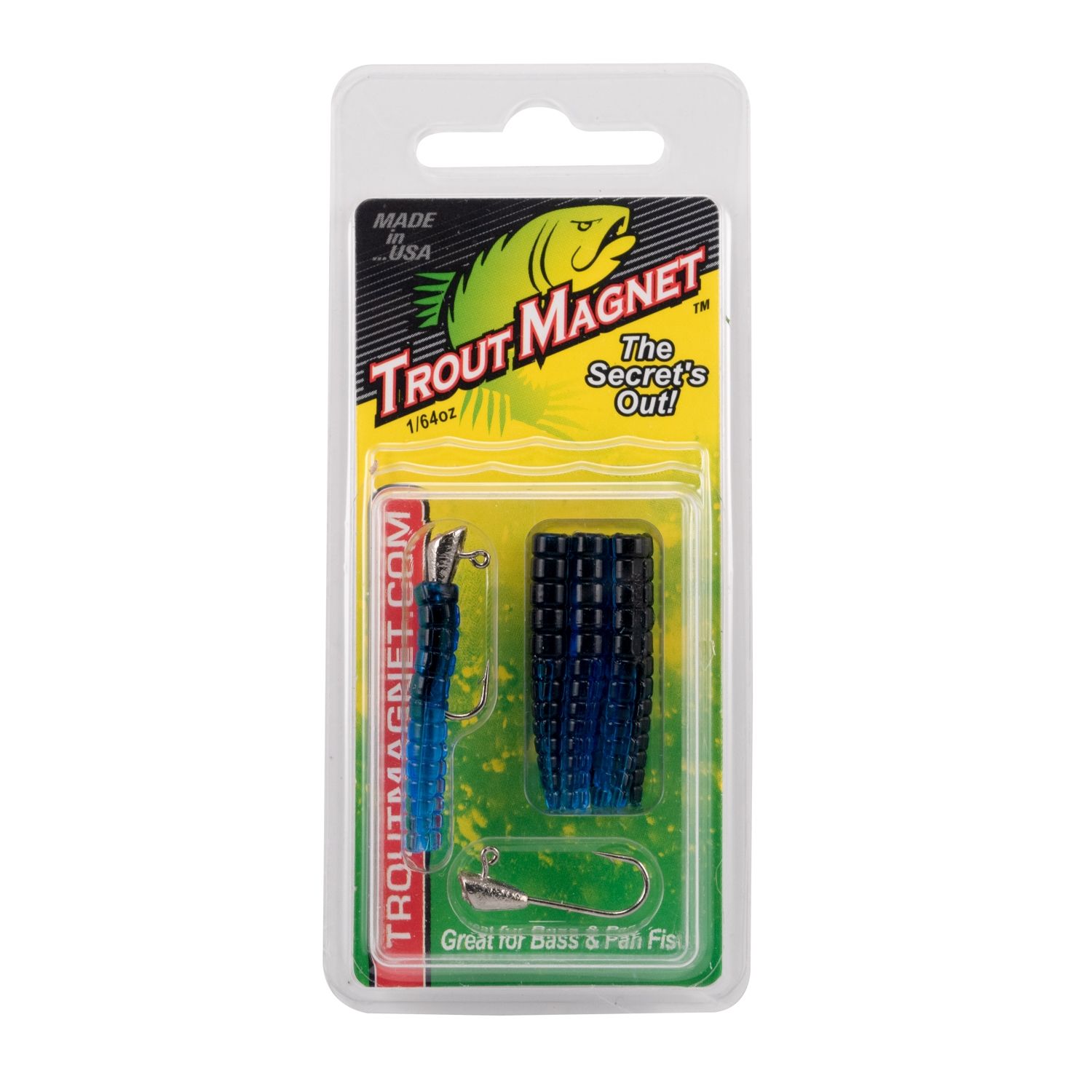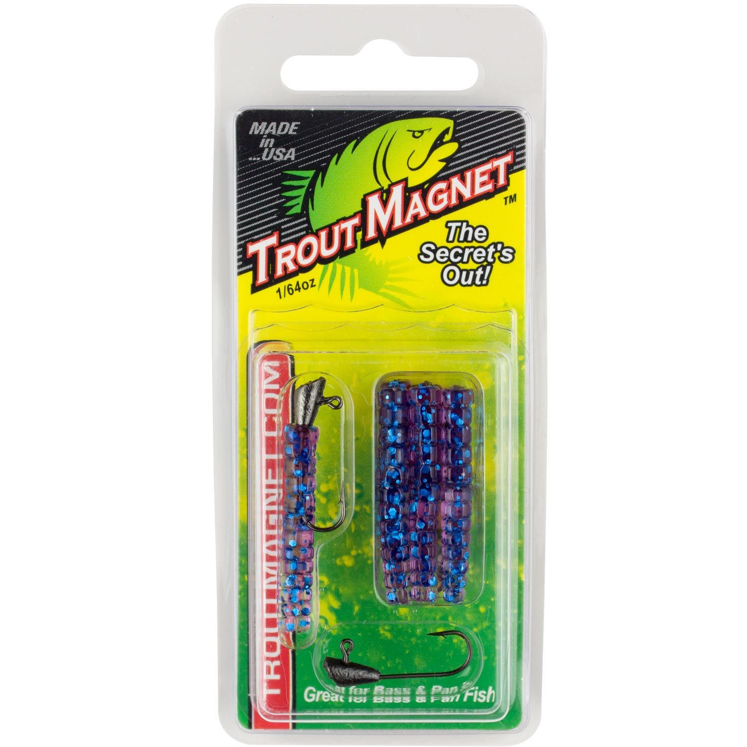 Deliver some well-balanced presentations with the Leland's Lures Trout Magnet and out fish everyone on the stream. The Trout Magnet is so irresistible because its balanced design allows it to fall with a lifelike horizontal profile rather than a vertical plunge. It can be used with or without a float; like natural forage, it flows along with the stream. With a few added twitches of your rod tip, the shad dart head and undulating split-tail create a subtle, lifelike action that fools trout into striking with abandon. Includes 2 Trout Magnet jig heads and 7 bodies.